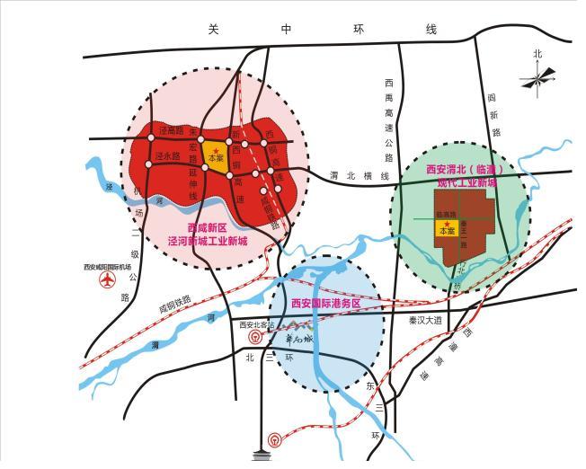 西安渭北(临潼)高端制造产业园(以下简称产业园)是由西安渭北(临潼)现代工业新城管委会批准立项的由西安温商投资置业有限公司投资开发建设项目。项目规划用地2300亩,按1000亩土地建标准厂房及各种配套,300亩土地建设商住配套,其余1000亩土地由中小企业自建厂房区;项目总体容积率1.18,总建筑面积约180万平米,计划开发建设期五年。项目包括:标准厂房、科研中心、商务办公楼、产品展销中心、物流中心、星级酒店、宜居生活区、文化活动中心、休闲广场及其他配套设施。该项目位于西安渭北(临潼)现代工业新城,东临秦王一路,北至临高路,西、南均为规划路。